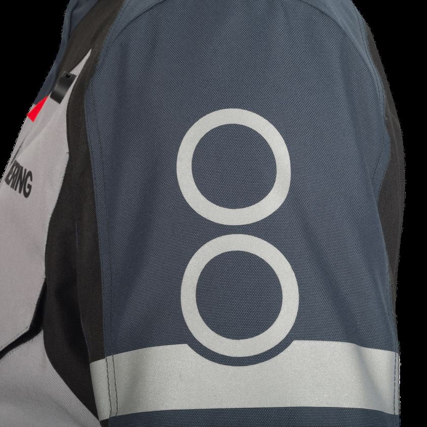 O blusão Bering Halifax é a escolha perfeita para motociclistas aventureiros que procuram flexibilidade, proteção e conforto. Confeccionado em Power Tech e Fibretech 600D, feito com fibras recicladas de poliéster, oferece grande resistência e sustentabilidade. O sistema 3 em 1 inclui um forro térmico removível Shelltech Mega e uma membrana BWTECH Extrem removível, garantindo impermeabilidade e termorregulação. As proteções ALPHA CE removíveis nos ombros e cotovelos (Nível 1) oferecem máxima segurança, e o compartimento para protetor de costas (não incluído) aumenta a proteção. Com o sistema de ventilação ADS, entradas de ar frontais, zíperes ajustáveis nos punhos e um sistema anti-flap nas mangas, adapta-se a diversas condições climáticas. O ajuste é facilitado pela gola ajustável com botão de pressão, zíperes laterais de expansão e cinto corta-vento. Para maior visibilidade, conta com detalhes refletivos e múltiplos bolsos práticos, incluindo um impermeável para carteira. Homologado segundo as normas CE EN 1621-1, EN 17092-3 AA e EN 17353 B2.