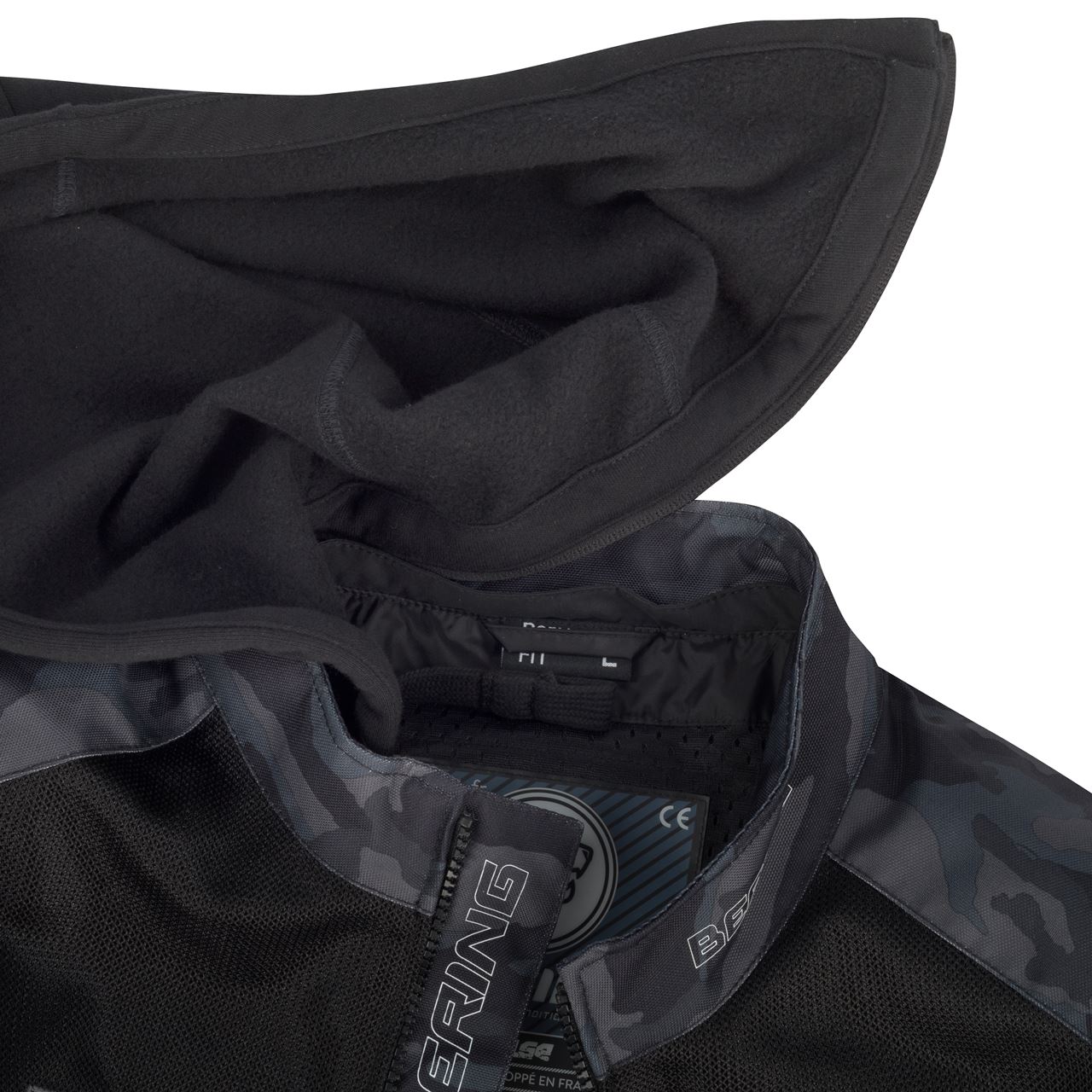 O blusão BERING SPIRIT é uma escolha urbana para o verão, com painéis de malha ventilada para maior conforto em dias quentes. Feito de Fibratech 600D com alta resistência à abrasão, oferece durabilidade e proteção. Inclui proteções removíveis ALPHA nos ombros e cotovelos, com a opção de adicionar uma proteção de costas (não incluída). Possui forro fixo em malha, capuz removível e ajustável, punhos com fecho de correr, zíper frontal e vários bolsos internos e externos para maior conveniência. Certificado CE EN 1621-1:2013, pr EN 17092 classe A, com detalhes refletores para melhor visibilidade em condições de pouca luz.