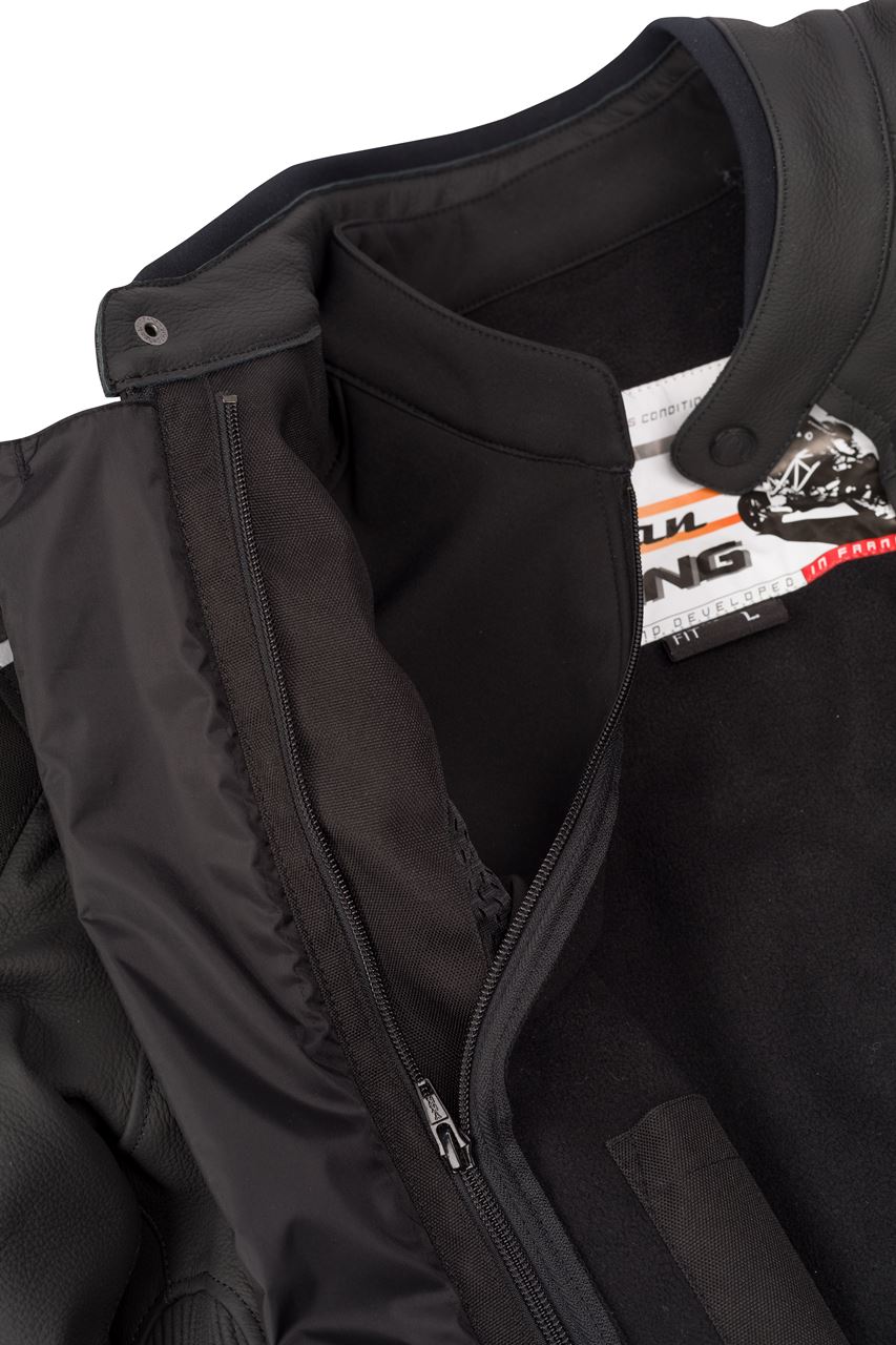O blusão Bering Hanson alia um design clássico a uma performance excecional, sendo ideal para motociclistas que exigem resistência e conforto. Confeccionado em couro de vaca premium mate, é altamente resistente à abrasão, com inserções de tecido ShieldTex elástico para um ajuste mais confortável. A membrana impermeável e respirável BW2 Tech 100+ assegura proteção contra as intempéries, enquanto o forro térmico removível em Softshell pode ser utilizado separadamente como um blusão casual. As proteções Safetech CE nos ombros e cotovelos são removíveis e ajustáveis, e o blusão possui um compartimento para adicionar um protetor de costas (não incluído). O sistema de ventilação ADS conta com entradas de ar termosseladas no peito e uma saída nas costas para regular o fluxo de ar interno. Detalhes em neoprene na gola e inserções de couro elástico nas laterais e parte superior das costas aumentam o conforto e a liberdade de movimento. Os punhos são ajustáveis por zíper e botões de pressão. Com dois bolsos exteriores, dois interiores e detalhes 3M Scotchlite® Reflective, o blusão oferece visibilidade extra em condições de pouca luz. Certificado conforme as normas CE.