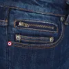 Os jeans BERING MARLOW foram especialmente concebidos para mulheres, fabricados em tecido de ganga elástica e Dupont Kevlar®. Possuem proteções ajustáveis e homologadas nos joelhos. Têm um corte afunilado e contam com proteções removíveis EasyFlex nos joelhos, cuja altura é ajustável. Além disso, possuem um compartimento para protetores de anca, 5 bolsos exteriores e inserções refletoras. As calças são certificadas CE EN 1621-1: 2013, pr EN 17092.