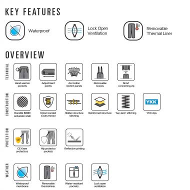 Calças de homem impermeáveis e respiráveis - com forro térmico amovível - suspensórios - bolsos impermeáveis - bandas reflectoras - versão Short com a perna mais curta