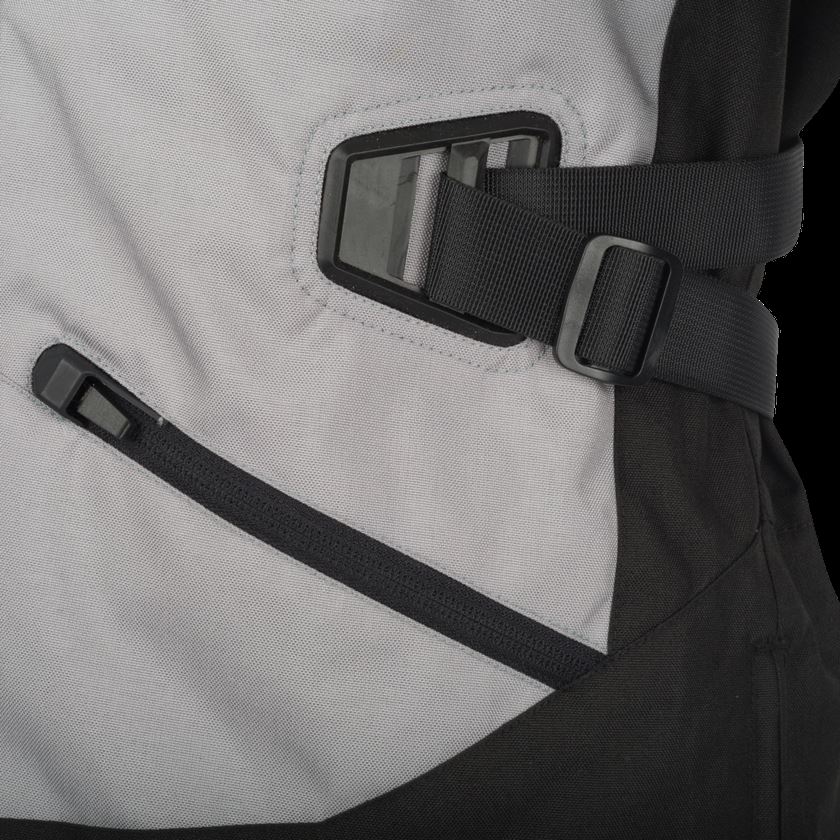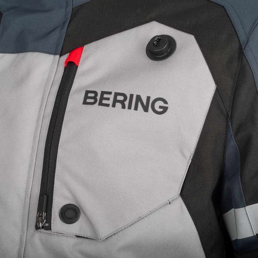 O blusão Bering Halifax é a escolha perfeita para motociclistas aventureiros que procuram flexibilidade, proteção e conforto. Confeccionado em Power Tech e Fibretech 600D, feito com fibras recicladas de poliéster, oferece grande resistência e sustentabilidade. O sistema 3 em 1 inclui um forro térmico removível Shelltech Mega e uma membrana BWTECH Extrem removível, garantindo impermeabilidade e termorregulação. As proteções ALPHA CE removíveis nos ombros e cotovelos (Nível 1) oferecem máxima segurança, e o compartimento para protetor de costas (não incluído) aumenta a proteção. Com o sistema de ventilação ADS, entradas de ar frontais, zíperes ajustáveis nos punhos e um sistema anti-flap nas mangas, adapta-se a diversas condições climáticas. O ajuste é facilitado pela gola ajustável com botão de pressão, zíperes laterais de expansão e cinto corta-vento. Para maior visibilidade, conta com detalhes refletivos e múltiplos bolsos práticos, incluindo um impermeável para carteira. Homologado segundo as normas CE EN 1621-1, EN 17092-3 AA e EN 17353 B2.